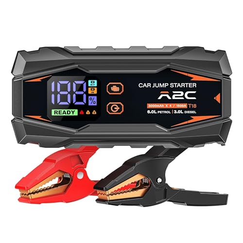 A2C Car jump starter, 12V jump starter power pack (up to 6.0L Gas Or 3.0L Diesel), 16800mAh Portable charger (PD/QC 3.0) with 3 USB C, Car battery charger with Jump Leads, LED Display and Light