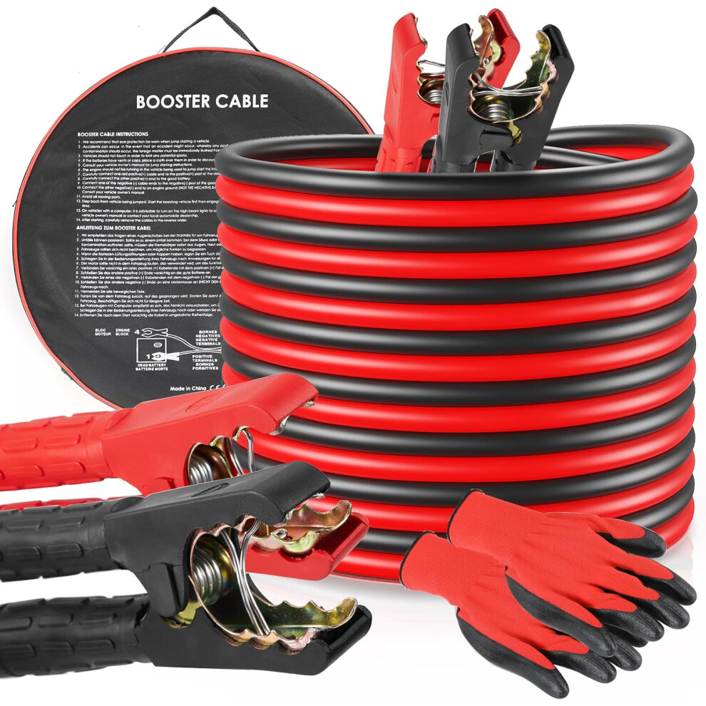 Jump Leads Car Van Battery Jumper Cables, Heavy Duty 2000AMP 4 Meters Long Booster Cables for Jump Starting Petrol Diesel Car Battery with Gloves, Brushes and Bag