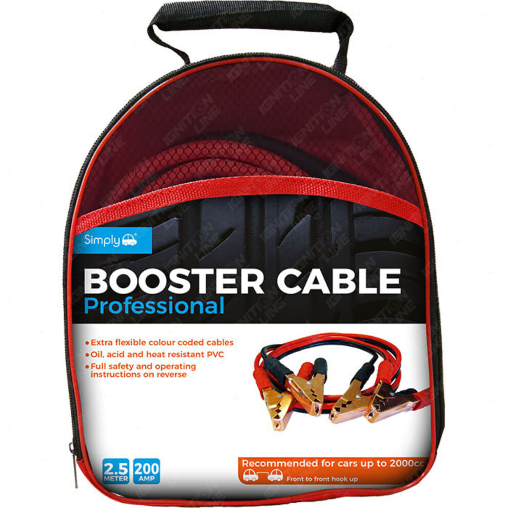 2.5M Heavy Duty 200 Amp Jump Leads Car Van Auto Battery Booster Starter Cables