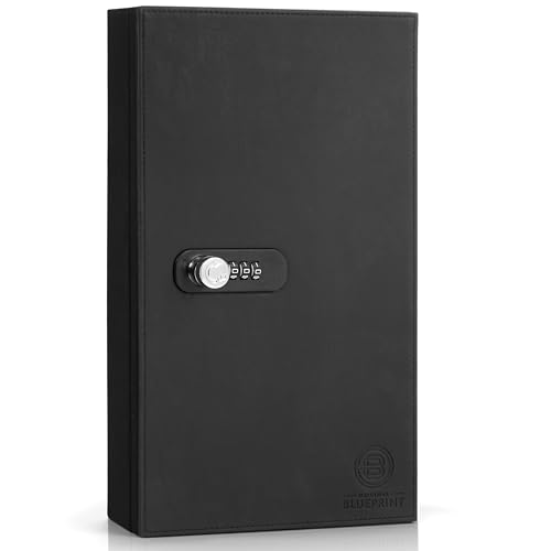 Original Blueprint Faraday Box for Car Keys - Wall Mounted with Security Lock - RFID Signal Blocking Anti Theft Key Box - Magnetic Closure - PU Leather (Black) XL