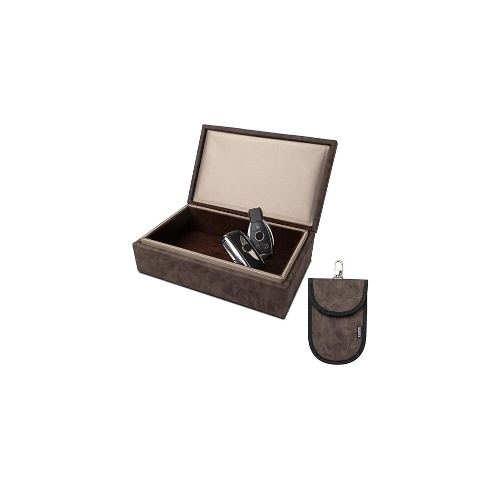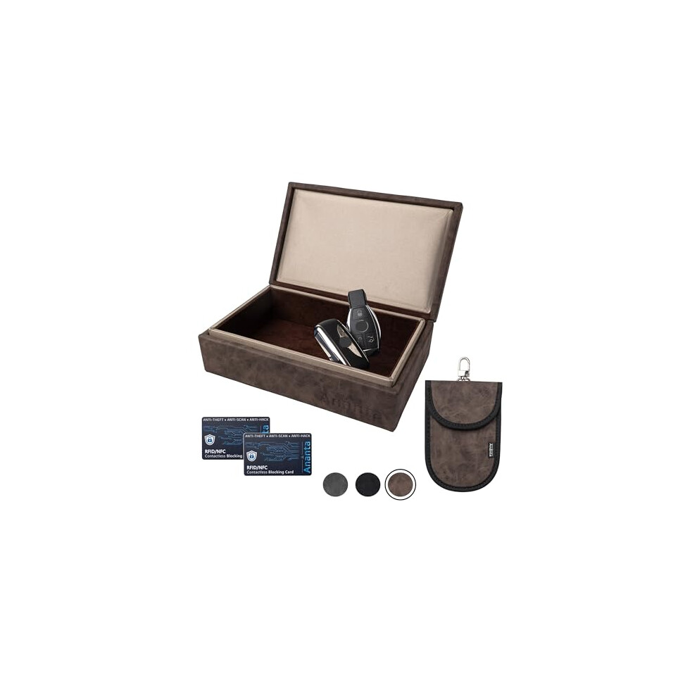 Ananta Faraday Box for Car Keys â Premium RFID Key Box with Secure Magnetic Close, Spare Key Pouch & RFID Blocking Cards (Brown)