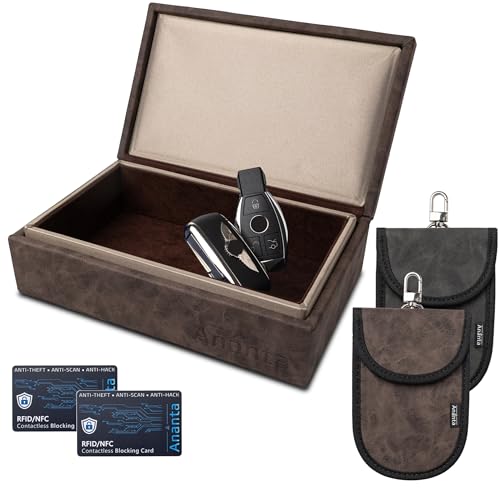 Ananta Faraday Box for Car Keys – Luxury RFID Signal Blocking Key Box, Magnetic Close, Twin Faraday Pouches & RFID Cards (Brown)