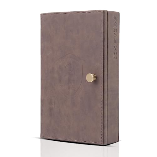 CKEYURE Premium XL Brown PU Leather Faraday Box for Car Keys Wall Mounted with Magnetic Closure | Anti Theft Car Key Signal Blocker Box | Faraday Cage | RFID box & Signal Blocking Box for Car Keys