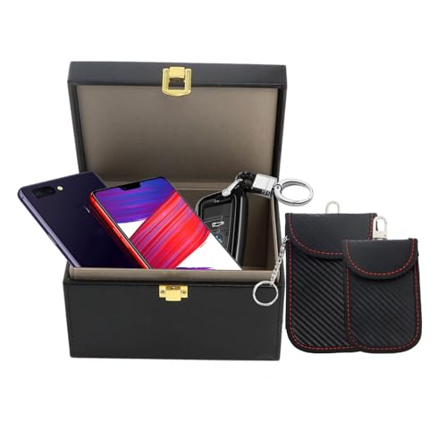 pobowlgarls Faraday Box with 2 Pack FaradayPouch for Car Keys, Keyless Entry Car Key Signal Blocking Box, RFID Anti-Theft Faraday Cage, Car Key Fob Protector for Car Phone Credit Card Security (M)