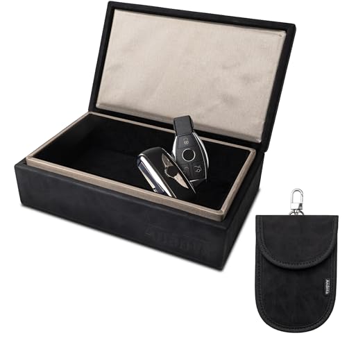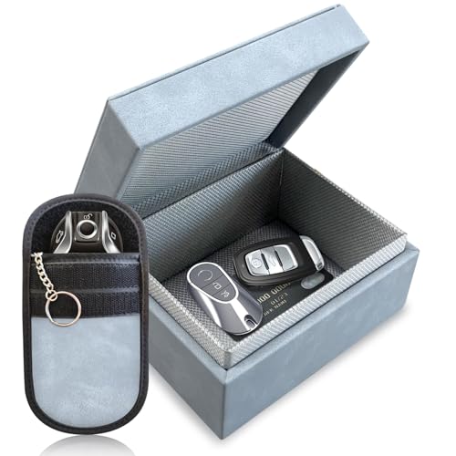 Faraday Box for Car Keys & Faraday Pouch for Car Keys – Double-Layer Signal Blocking Keyless Car Key Signal Blocker Box and RFID Key Pouch – Keyless Entry Car Key Safe Protector