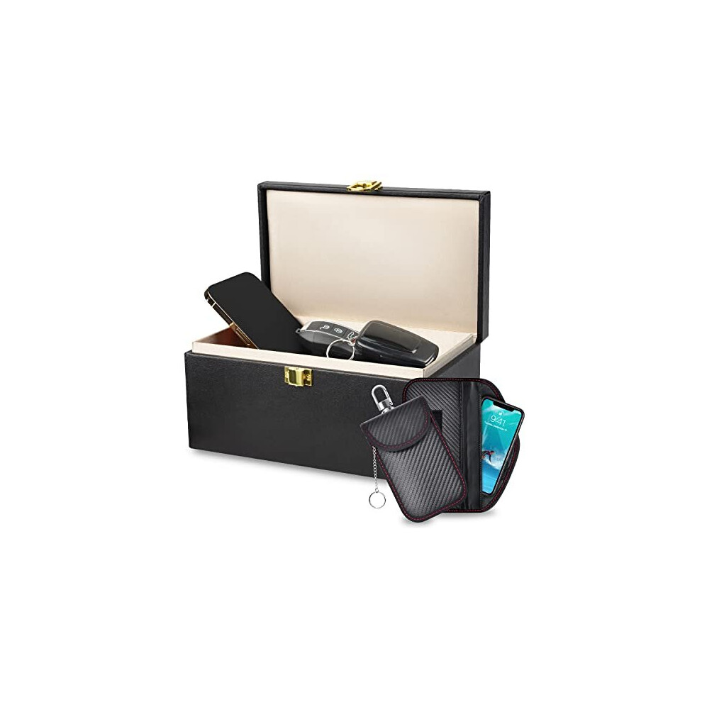 Samfolk Faraday Box and Pouch 2 Pack, 8.6 x 5.1x 4.1 inches Faraday Box for Car Keys, Keyless Entry Car Key Safe Protector, Anti-Theft Signal Blocking Cages