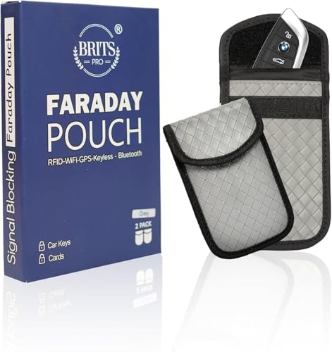 BRITS PRO Faraday Pouch - 2 Pack Car Key Signal Blocking Pouch, RFID Leather Blocker & Anti-Theft Signal Blocking Faraday Bag, Car Key Pouch with Keyring, Waterproof Key Cover (Grey)