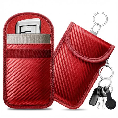 Vammcht Upgraded Faraday Bag for Key Fob (2 Pack), Premium Faraday Key Fob Protector– Car RFID Signal Blocking, Car Security Protection, Anti-Theft Pouch, Anti-Hacking Case Blocker Red