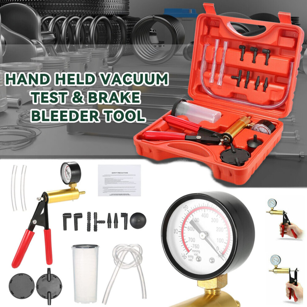 2 In 1 Brake Bleeder Vacuum Pump Gauge Test Tuner Kit Car Hand Tools