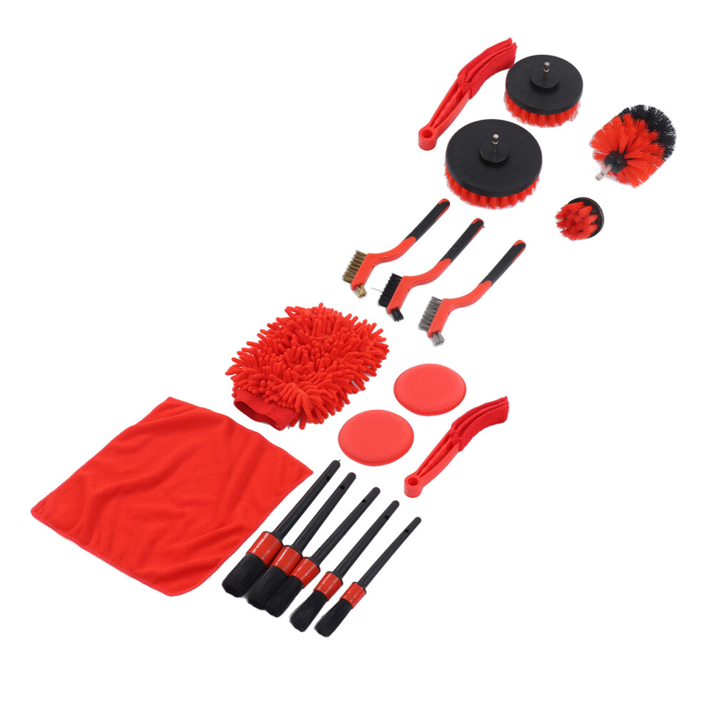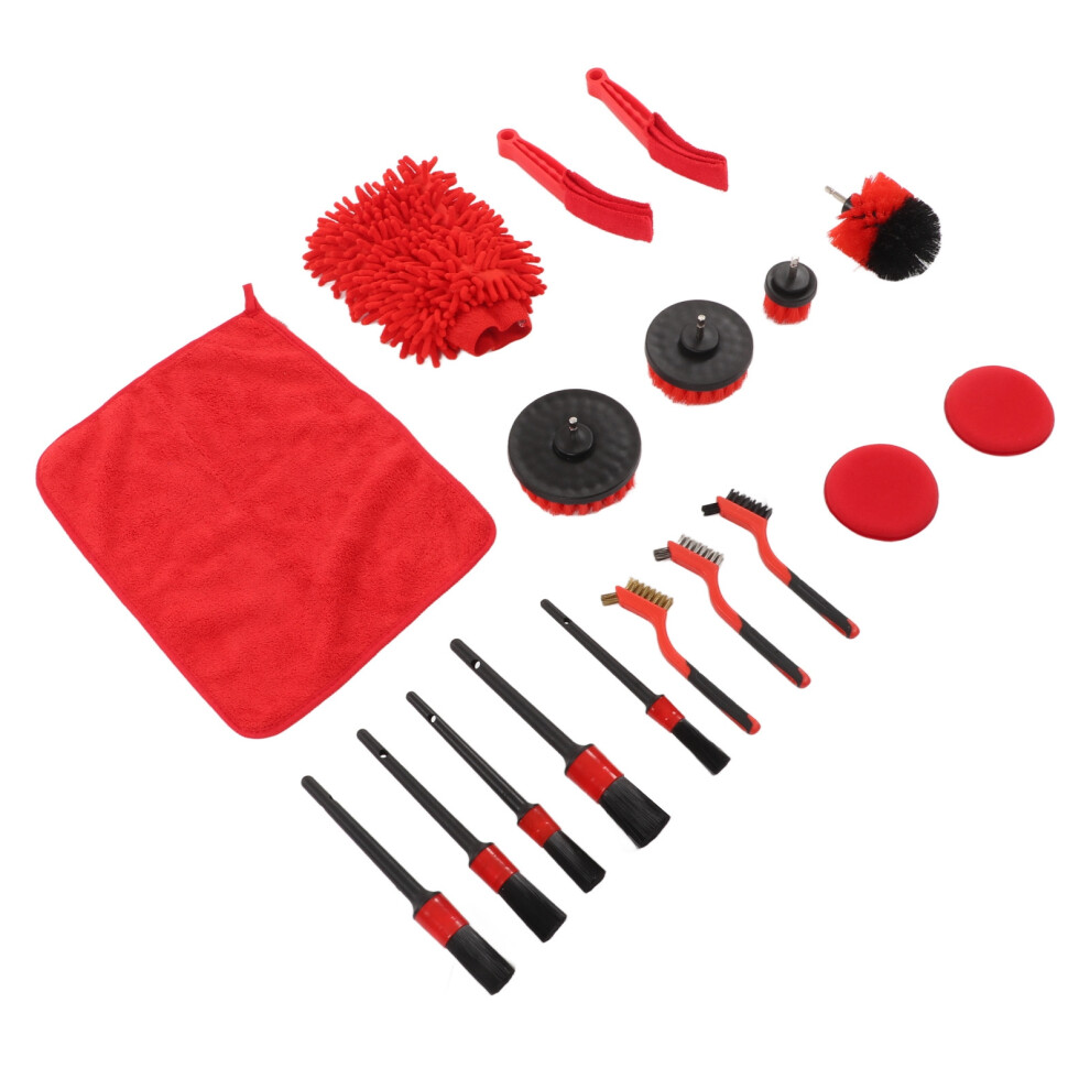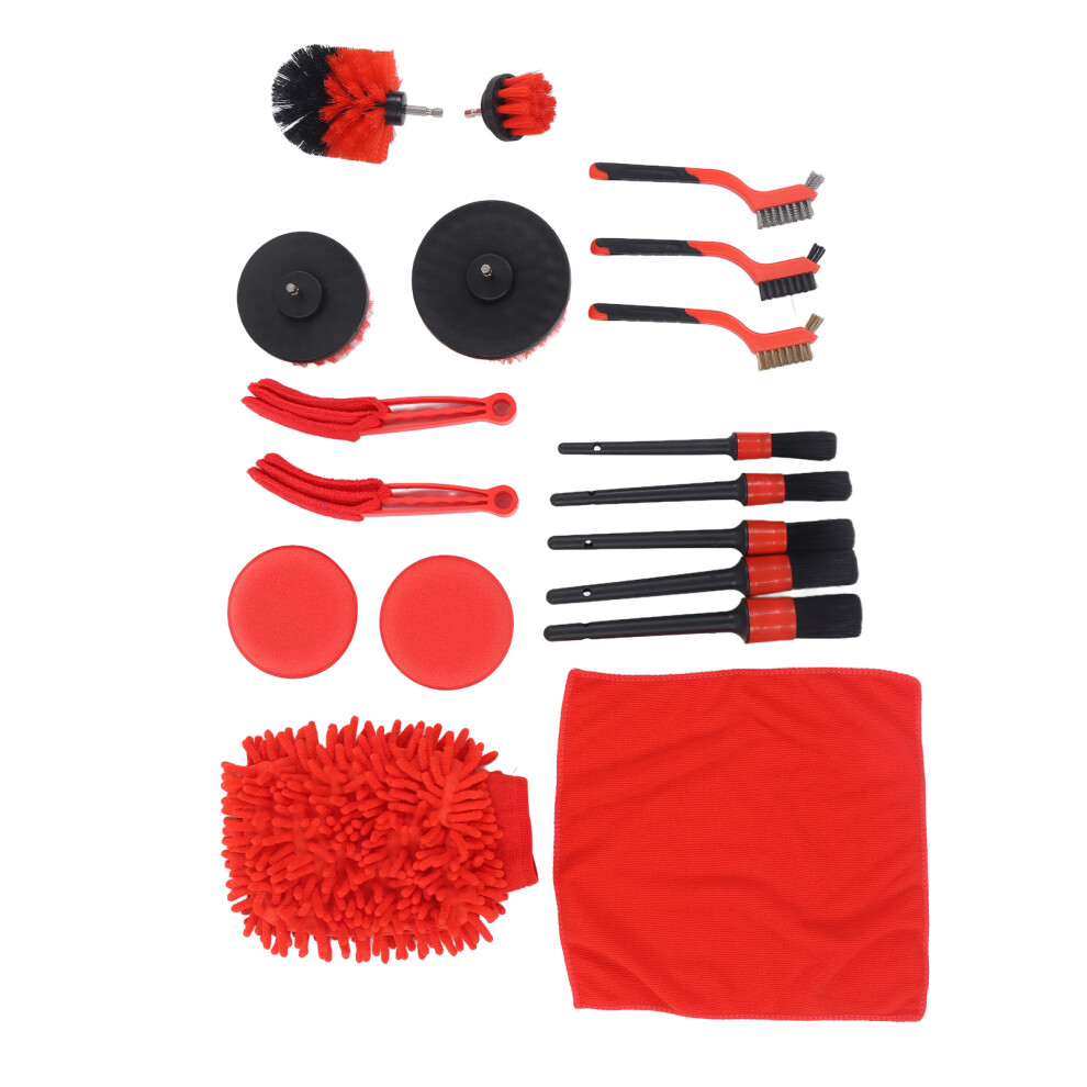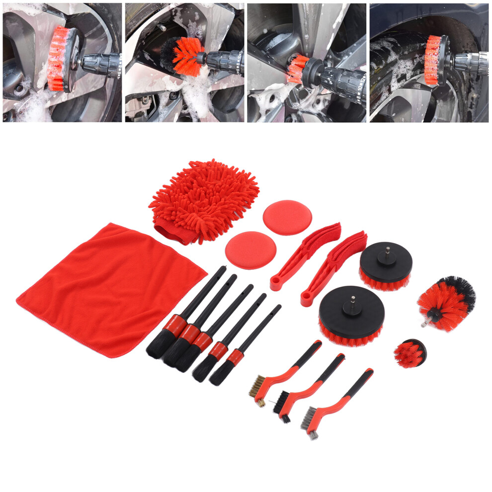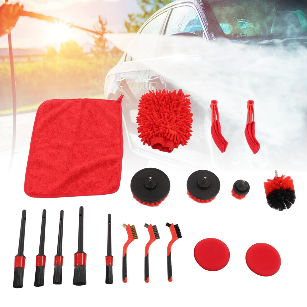 18 PCS Car Cleaning Tools Kit, Detailing Brush Set with Drill Attachment Set, Wash Kit (Red)