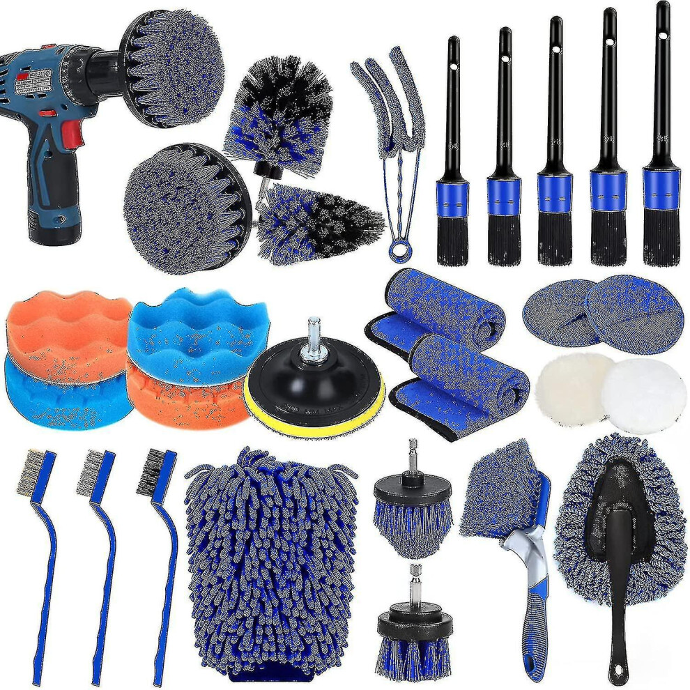 30pcs Car Detailing Brush Set, Car Detailing Brushes Kit, Auto Detailing Drill Brush Set, Car Buffing Sponge Pads Kit,car Cleaning Tools Kit,car Acces