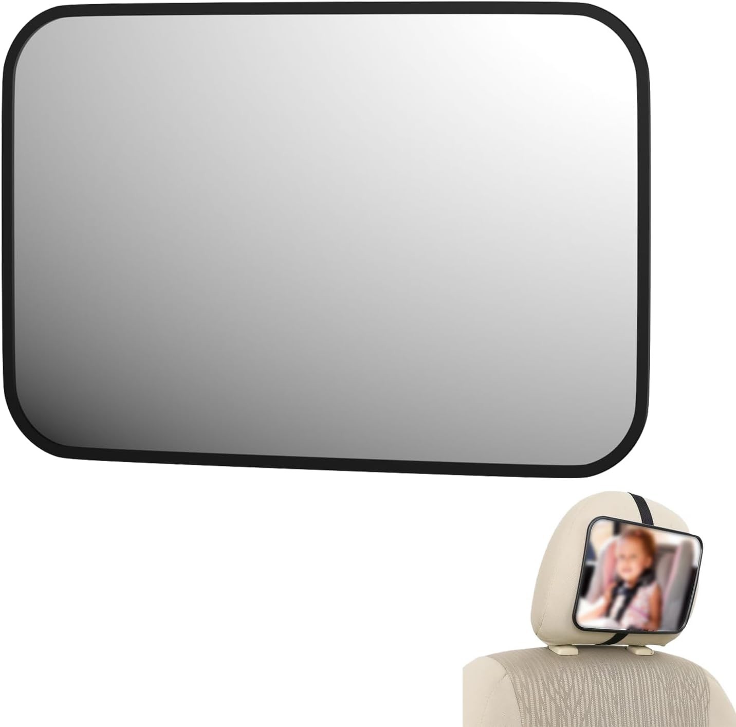 Leo and Ella - Tesla Fixed Headrest Baby Car Mirror Extra Large Car Mirror For Baby Shatterproof & Adjustable Safety Mount with Elastic Strap