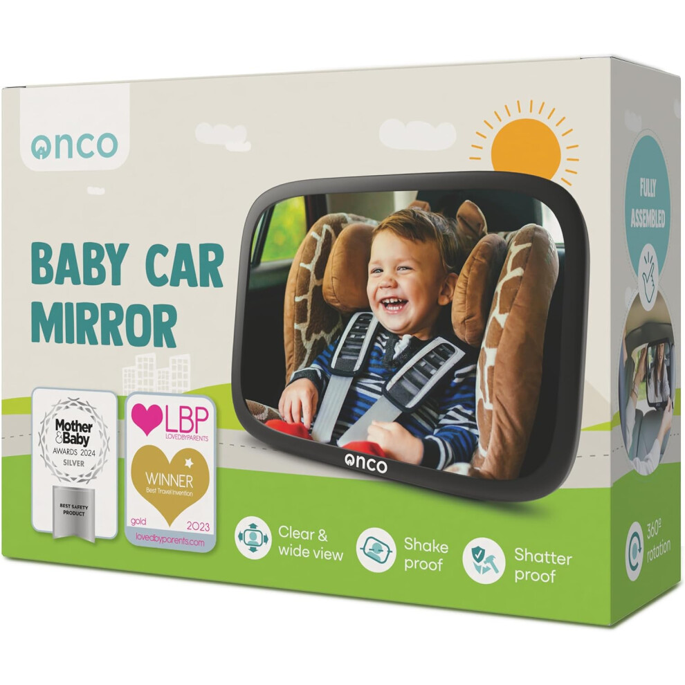 Onco Baby Car Mirror - 100% Shatterproof & Shakeproof, Award-Winning Car Mirror Baby Rear View, Non-Slip with 360° Rotation, Newborn Essentials