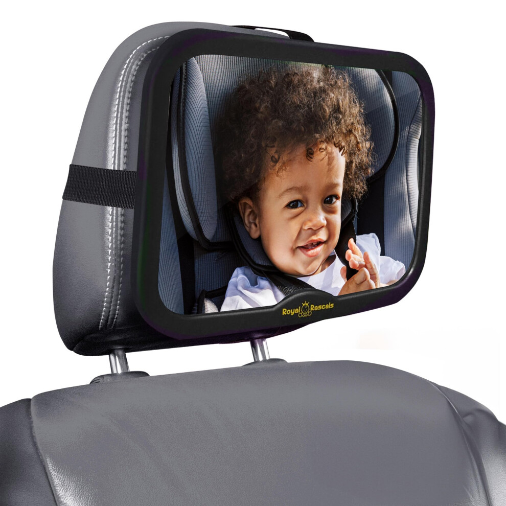 Royal Rascals Baby Car Mirror for Back Seat, Shatterproof Car Mirror Baby Rear View w/360? Rotation, Adjustable Straps & Sturdy Mount, Essentials for