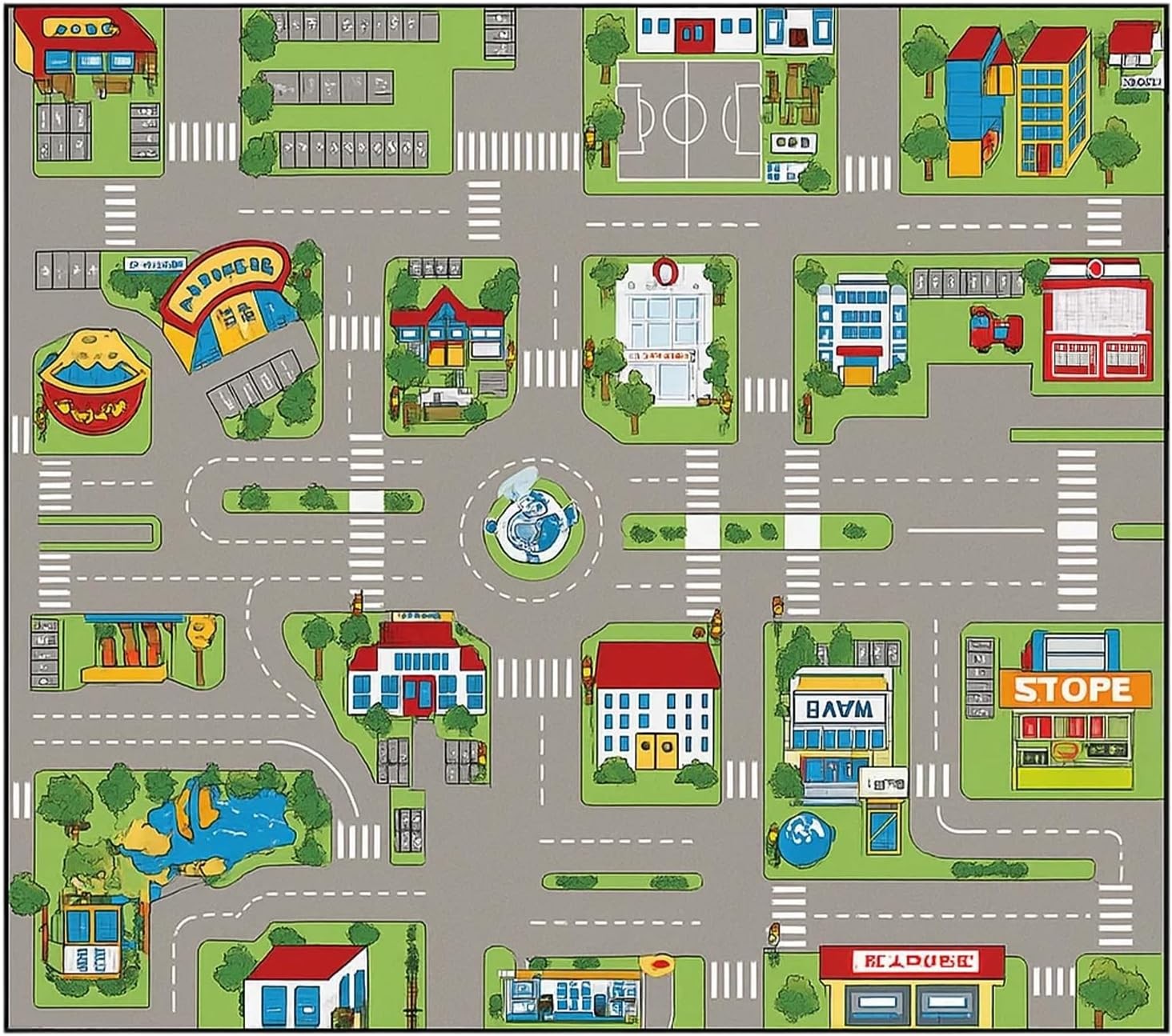 Car Rug, Play Mat for Toy Cars, Non-Slip Floor Mat for Kids Playroom and Classro