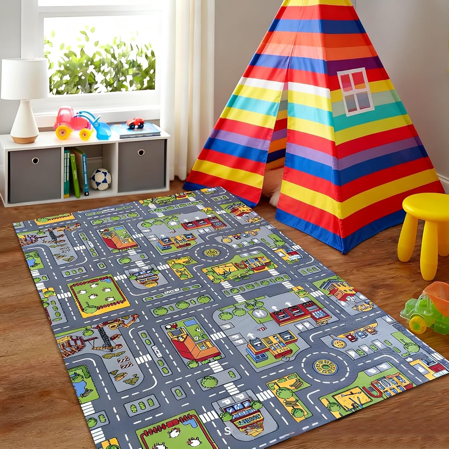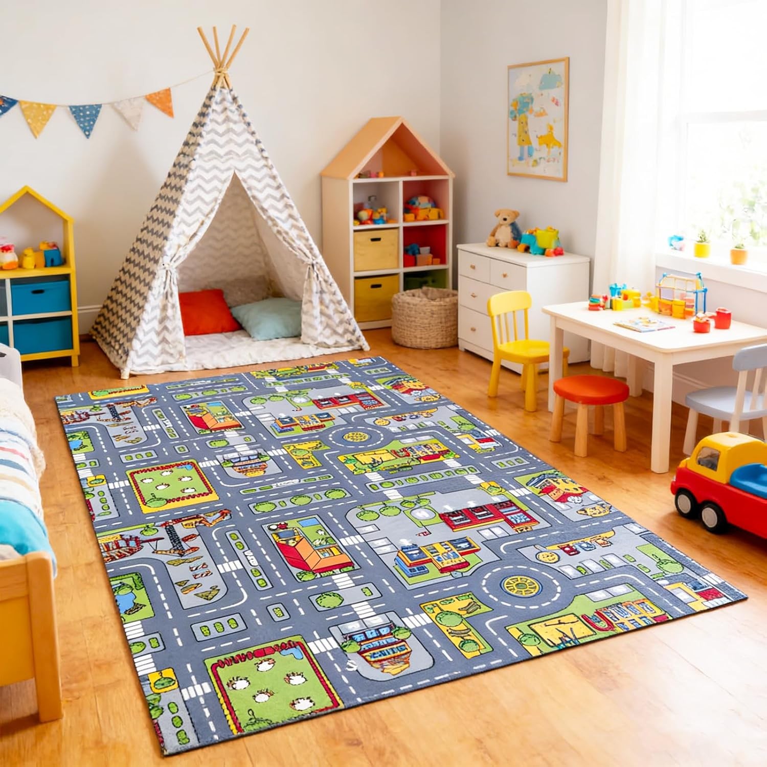 Car Rug, Play Mat for Toy Cars, Non-Slip Floor Mat for Kids Playroom and Classr