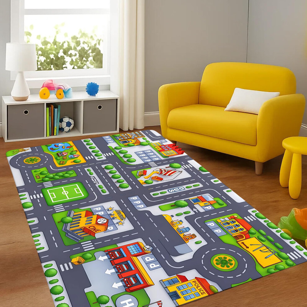 Car Rug, Play Mat for Toy Cars, Non-Slip Floor Mat for Kids Playroom and Classr