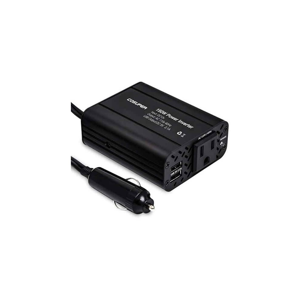 200W Car Power Inverter, DC 12V to 110V AC Car Plug Adapter Socket with USB Fast Charger 2.4A USB/Laptop Car Charger