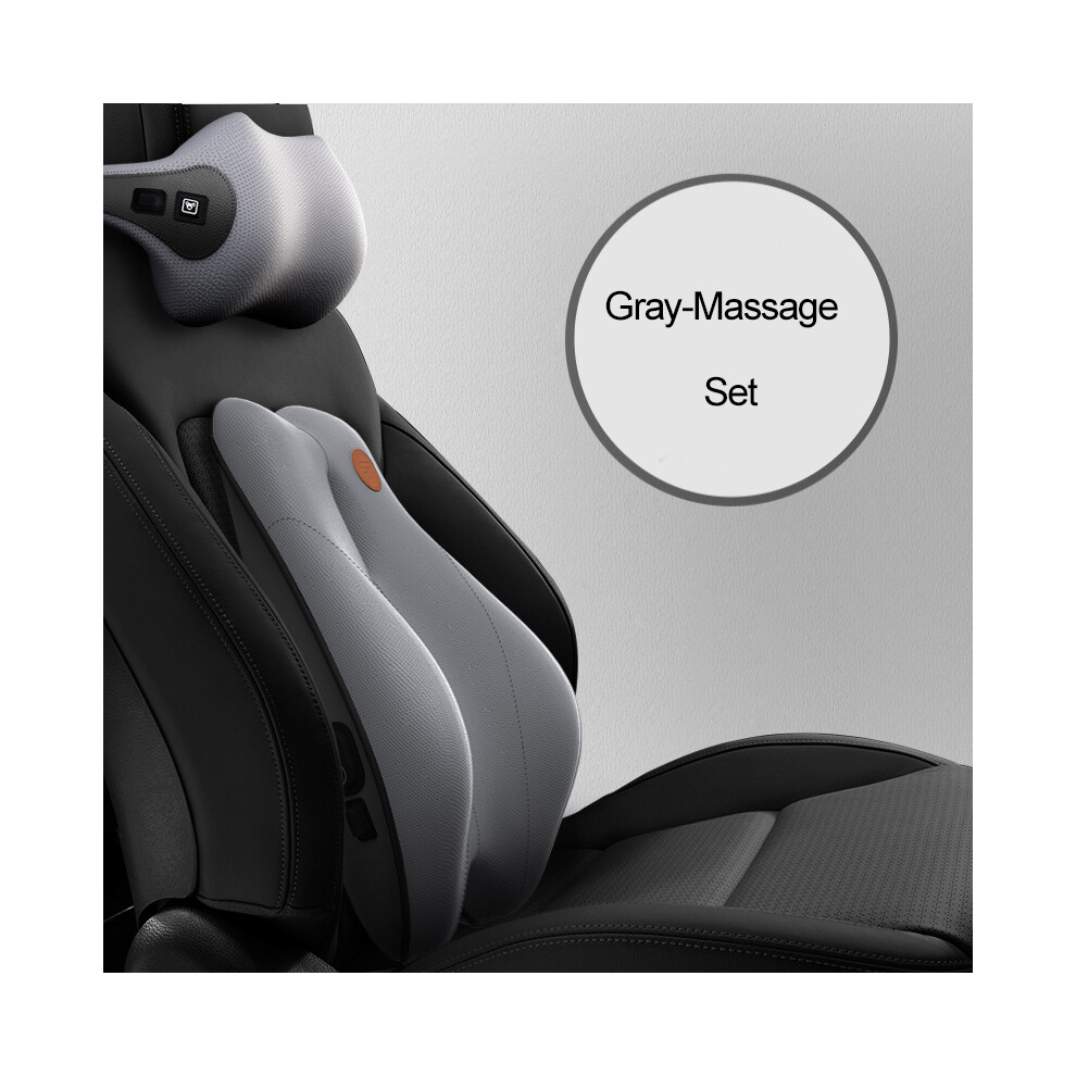 (Set-Gray) Massage Neck Support Pillow Car Seat Back Support Headrest Pillow Simulation