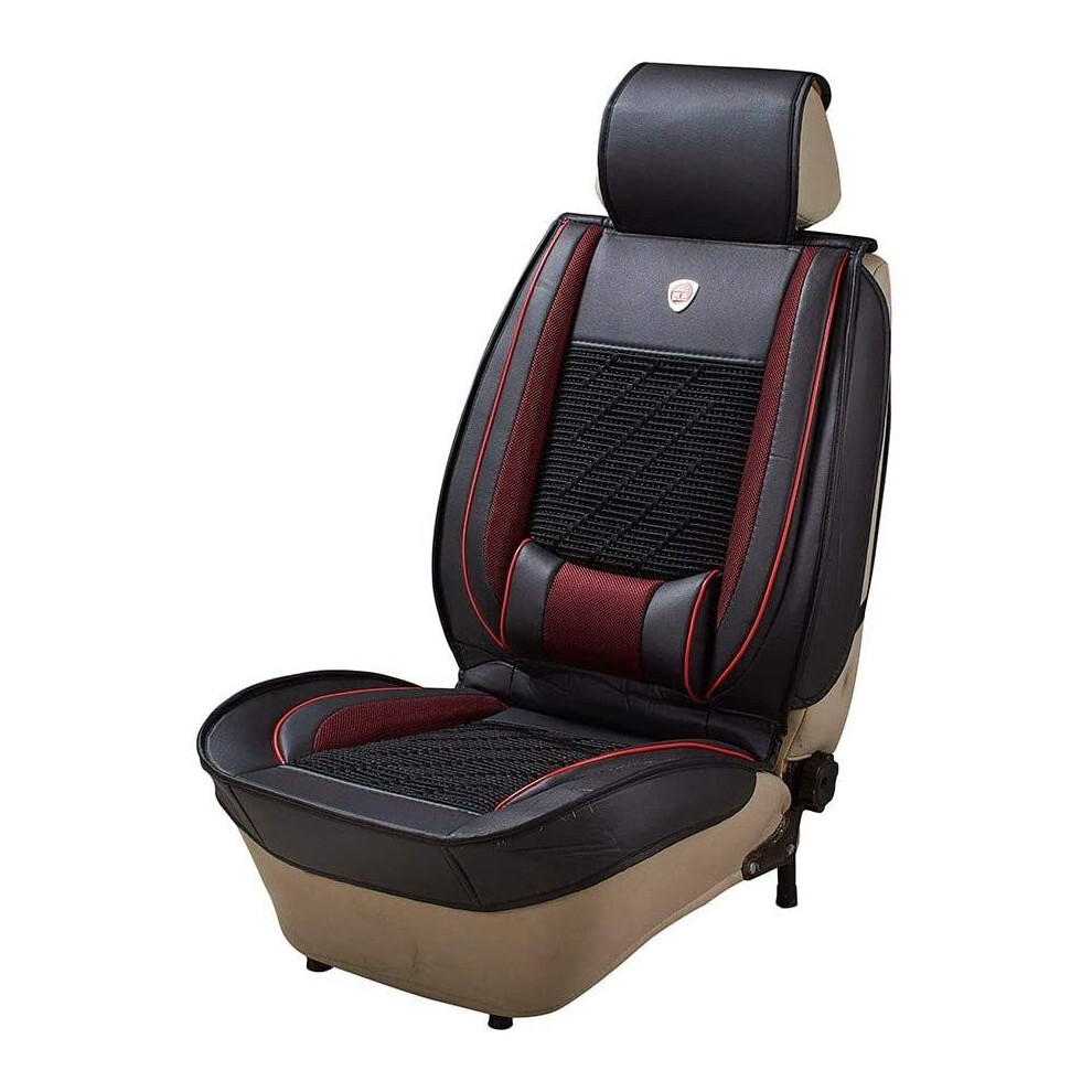 JSCARLIFE PU Leather Auto Car Seat Covers Universal Car Seat Cover Cushion Back Support Waist Massage (Black)
