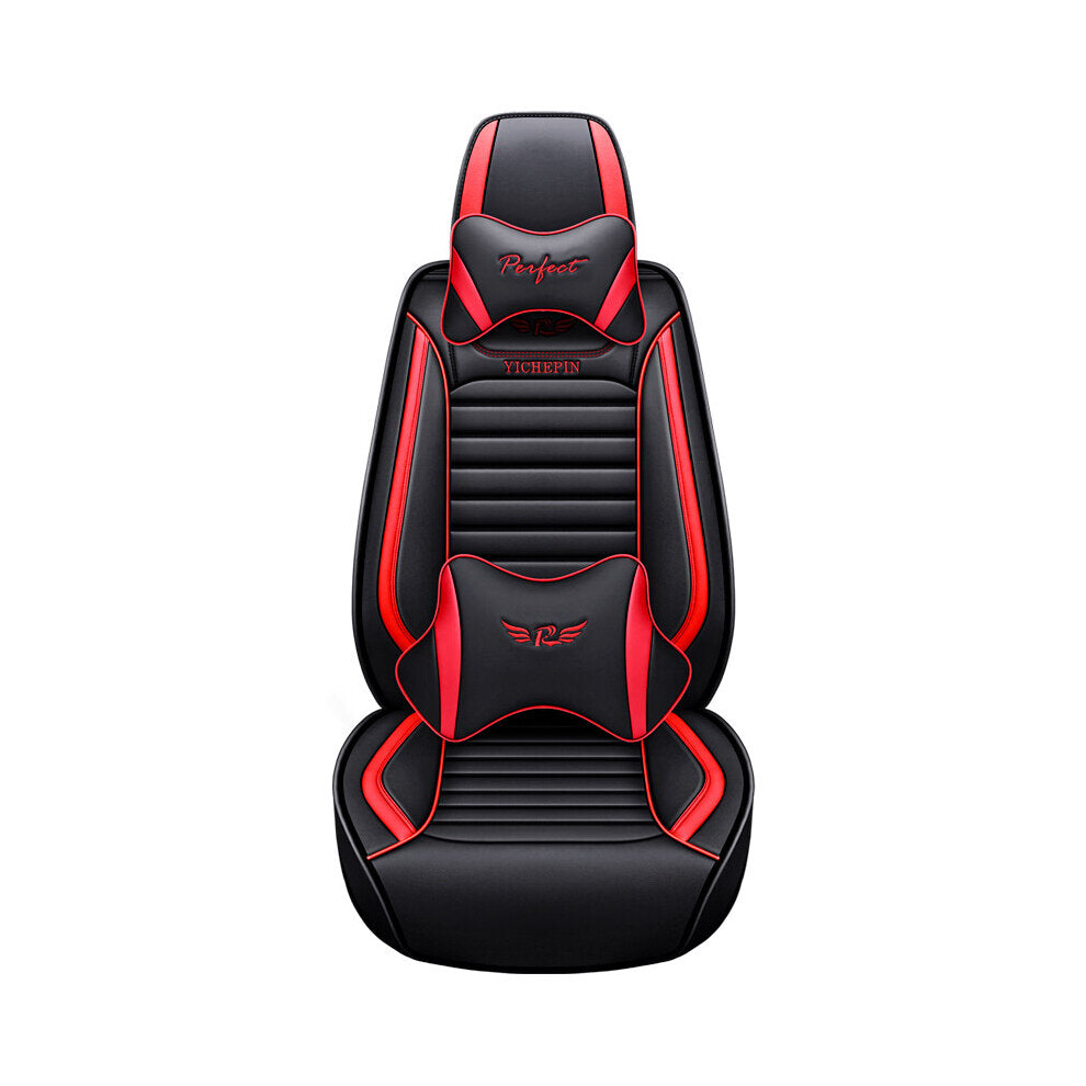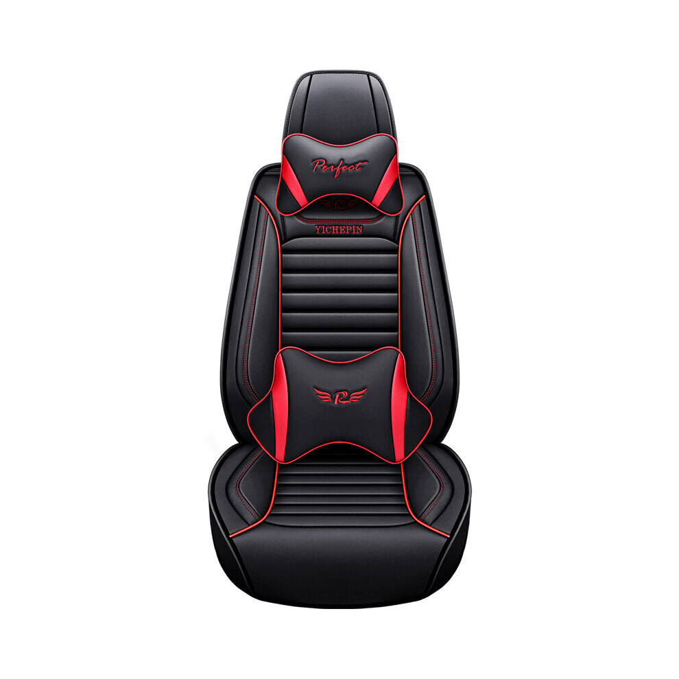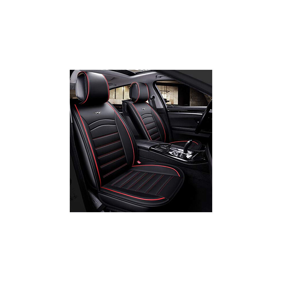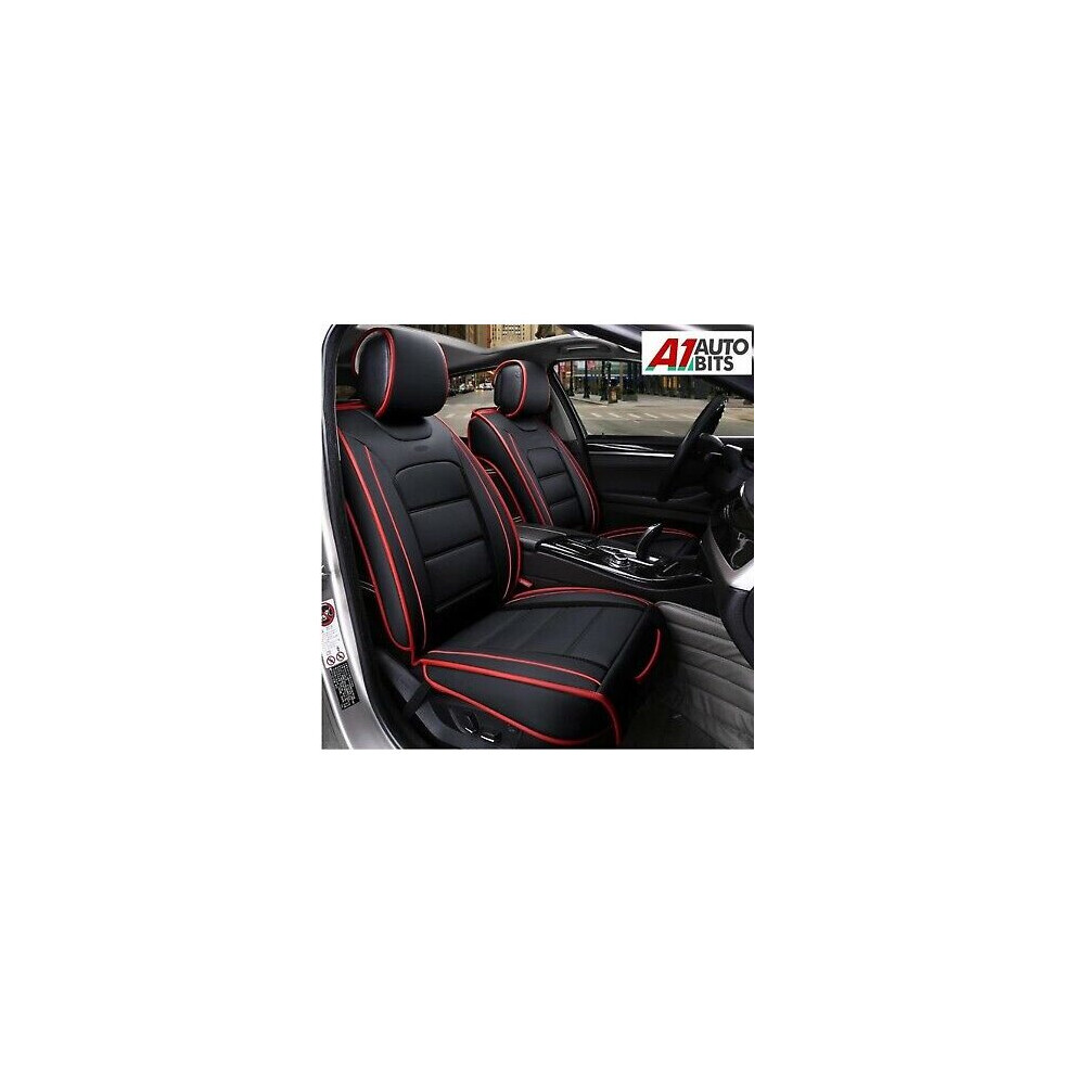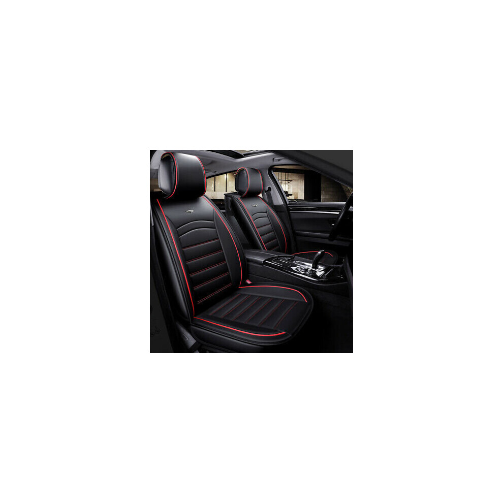 (Black red) PU Car Seat Cover Cushions with Headrest Automobile Universal Protective Mat Cushion Front and Rear Seat Cover for Car