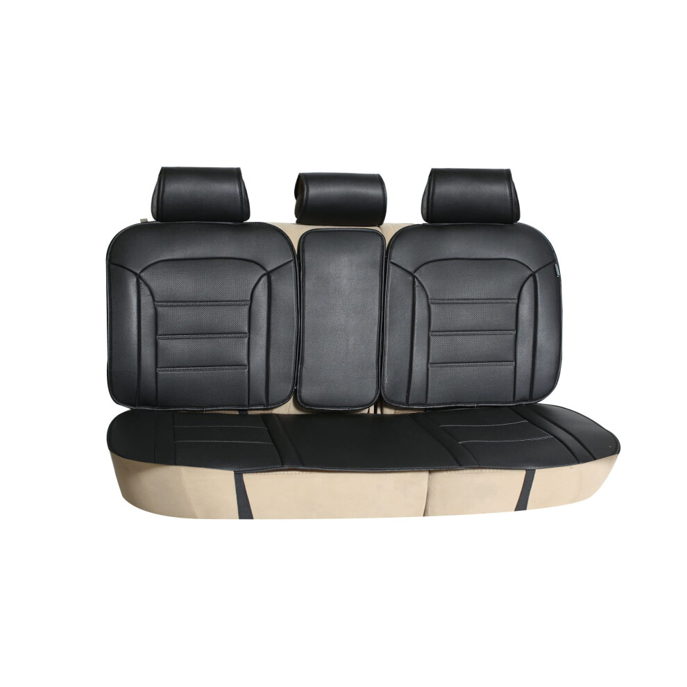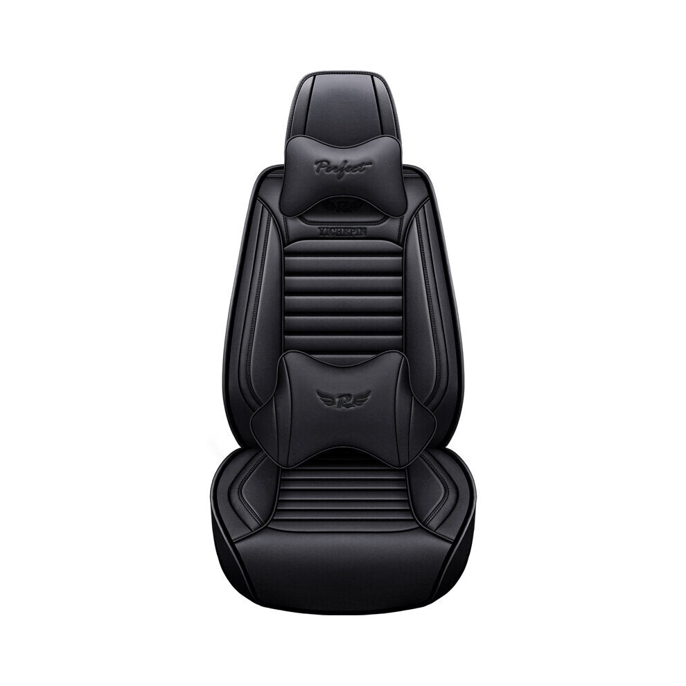 (Black) PU Car Seat Cover Cushions with Headrest Automobile Universal Protective Mat Cushion Front and Rear Seat Cover for Car