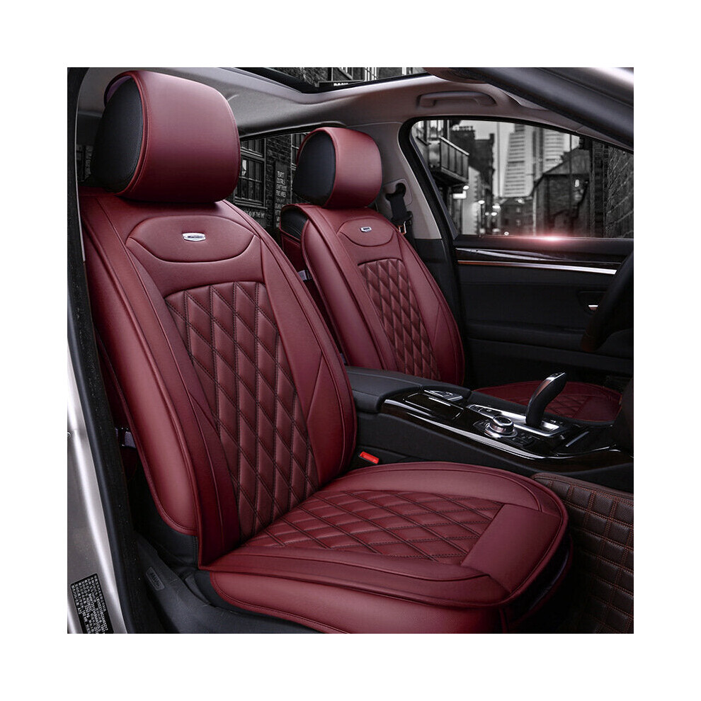 Universal Quality Red Black PU Leather Front Car Seat Covers Padded Cushions