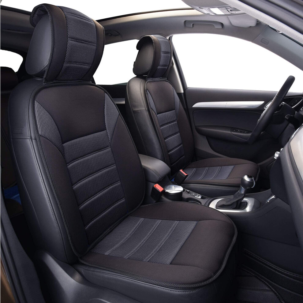 AB1 flexzon Universal Quality Deluxe Black PU Leather Front Car Seat Covers Padded Cushions