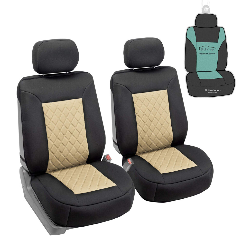 FH Group Car Seat Cover Cushion - 2 Pack Seat Covers for Cars Trucks SUV, Beige Black Neosupreme Car Seat Cushions, Waterproof Car Seat Cover Cushion