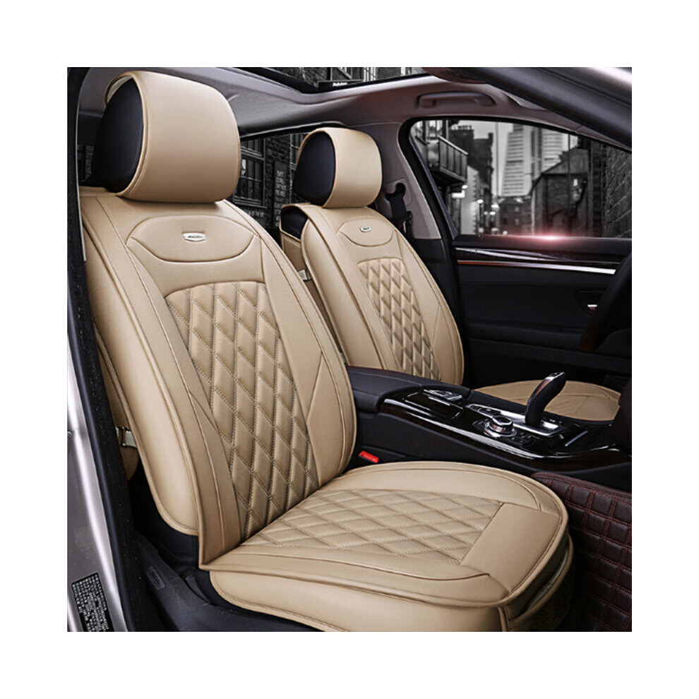 (Beige) PU Leather Car Seat Cover Cushions Universal Fit for Most SUV Trucks