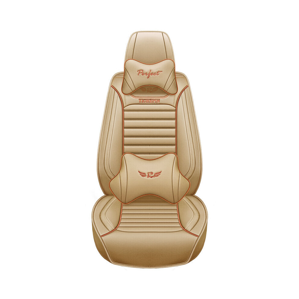 (Beige) PU Car Seat Cover Cushions with Headrest Automobile Universal Protective Mat Cushion Front and Rear Seat Cover for Car