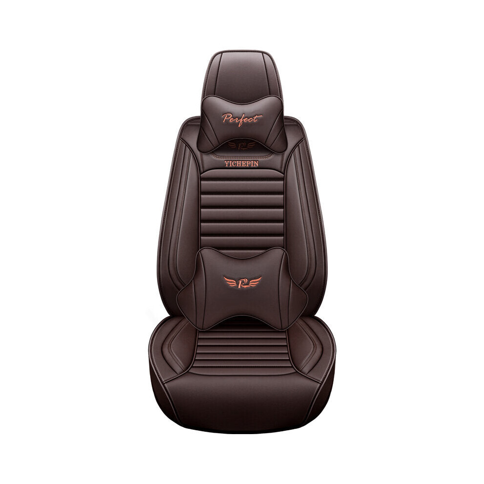 (Coffee) PU Car Seat Cover Cushions with Headrest Automobile Universal Protective Mat Cushion Front and Rear Seat Cover for Car