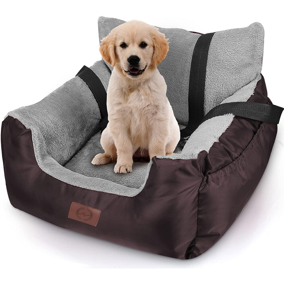 GL GLENSLAVE Dog Car Seat for Small/Medium Dogs Under 35lbs, Memory Foam Dog Booster Seats,Detachable and Washable Traval Pet Car Seat, Dogs Bed with 2 Safety Belts (Balck/Brown)