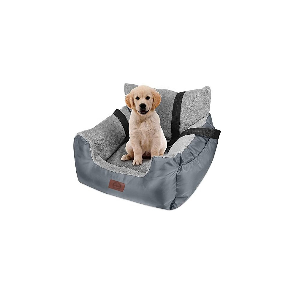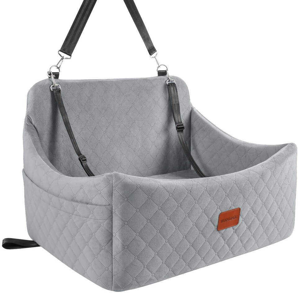 INDYBUD Dog Car Seat for Small/Medium Dogs up to 35 lbs, Memory Foam Pet Booster Seat with Detachable Washable Cover, Portable Pet Bed for Cars with Safety Belts and Storage Pockets (Grey, Medium)