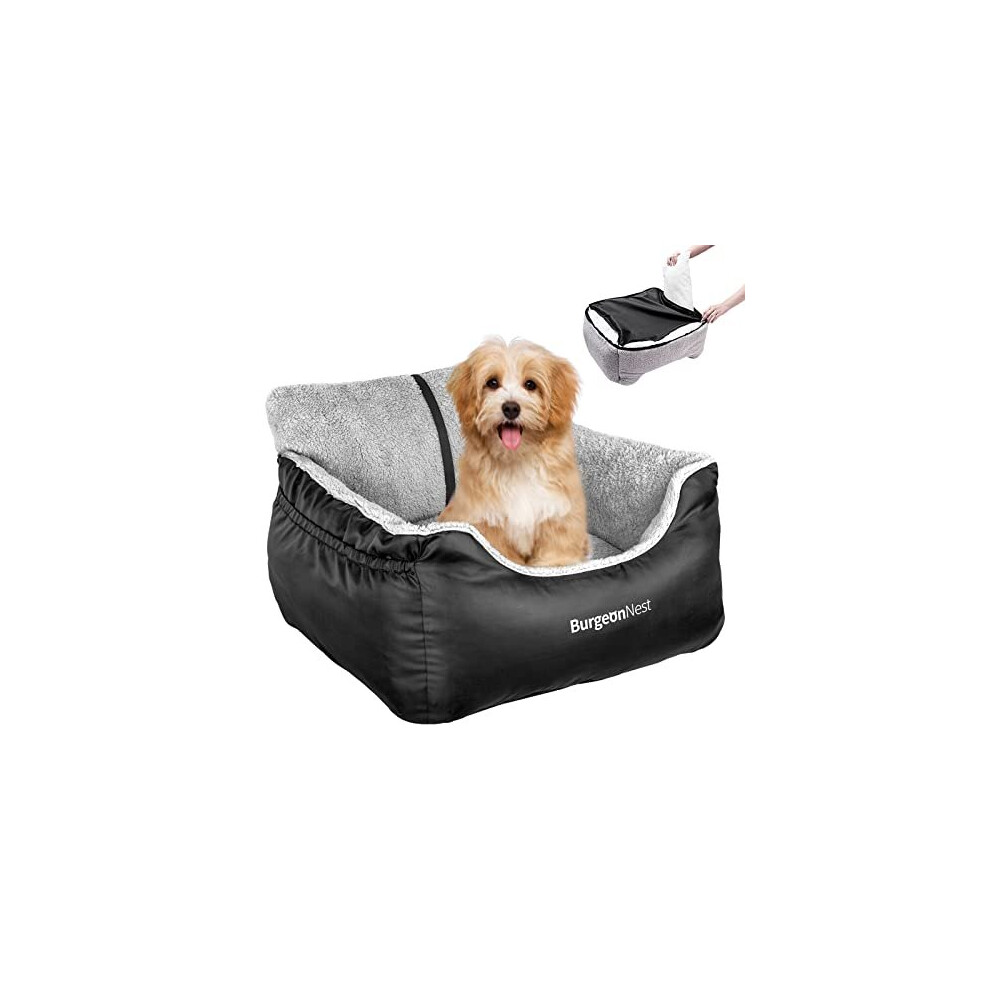 BurgeonNest Dog Car Seat for Small Dogs, Fully Detachable and Washable Puppy Dog Booster Seats, with Storage Pockets and Clip-On Leash Portable Soft