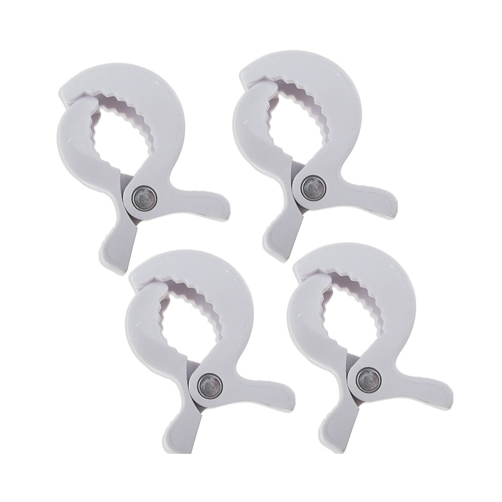 (White 4 psc) Baby Colorful Car Seat Accessories Plastic Pushchair Toy Clip Pram Stroller Peg To Hook Cover Blanket Mosquito Net Clips