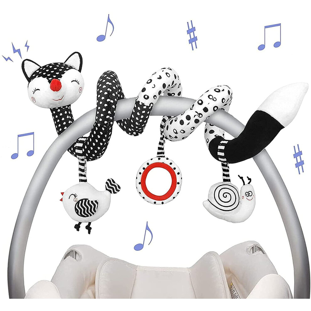 Pram Spiral Hanging Baby Toy - Newborn Car Seat Pushchair Activity Spiral Wrap Around Stroller Crib Cot Sensory Soft Plush Carseat Hanging Toys for
