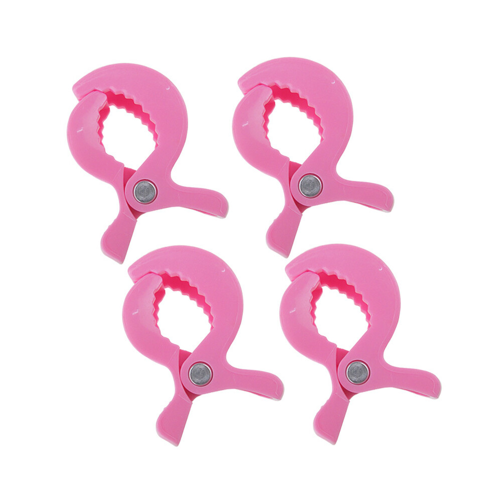 (Rose 4 psc) Baby Colorful Car Seat Accessories Plastic Pushchair Toy Clip Pram Stroller Peg To Hook Cover Blanket Mosquito Net Clips
