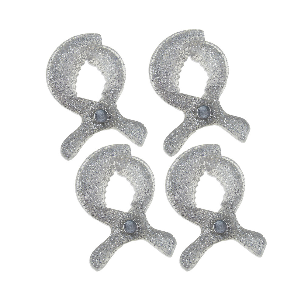 (Silver 4 psc) Baby Colorful Car Seat Accessories Plastic Pushchair Toy Clip Pram Stroller Peg To Hook Cover Blanket Mosquito Net Clips