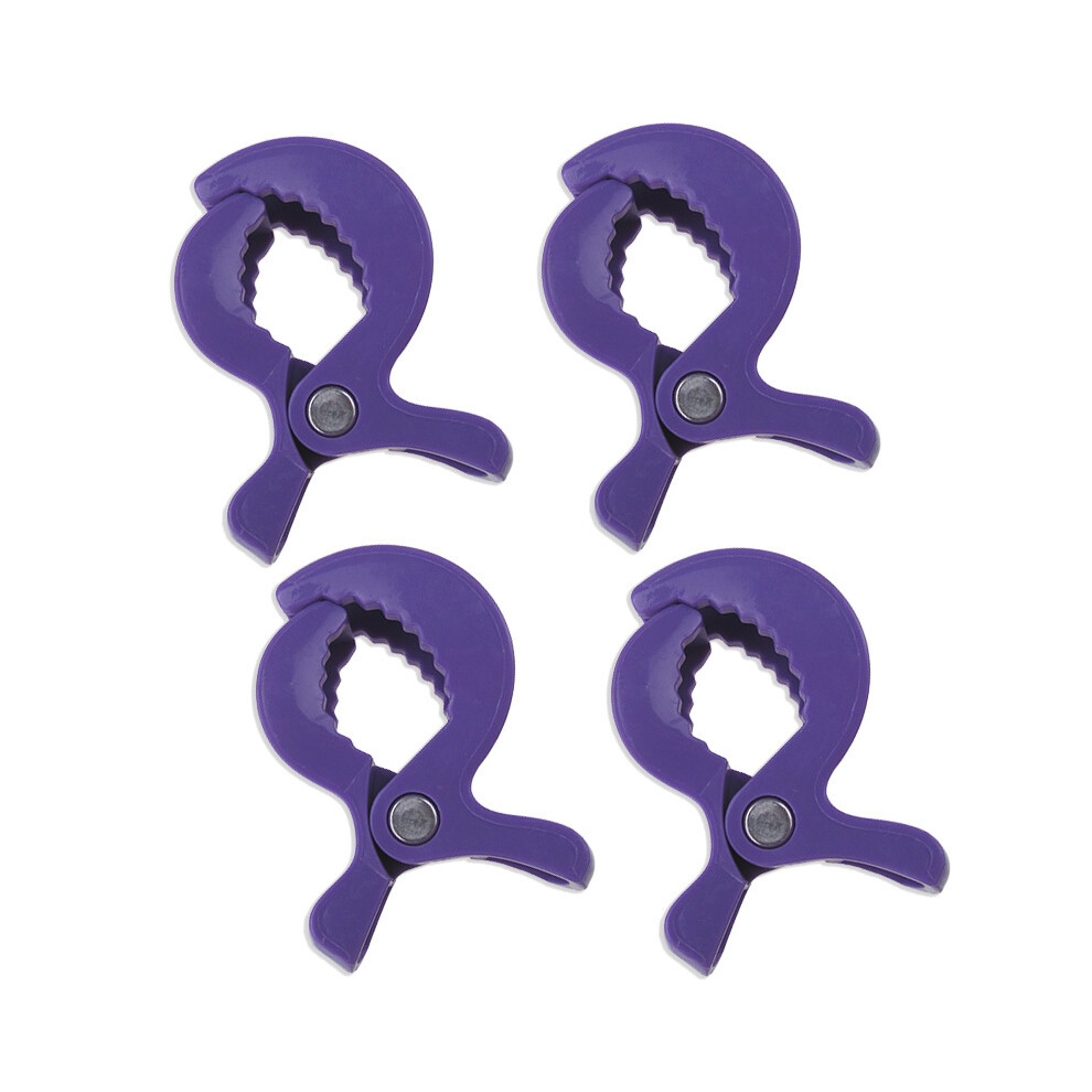 (Purple 4 psc) Baby Colorful Car Seat Accessories Plastic Pushchair Toy Clip Pram Stroller Peg To Hook Cover Blanket Mosquito Net Clips