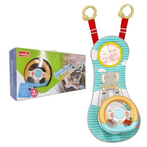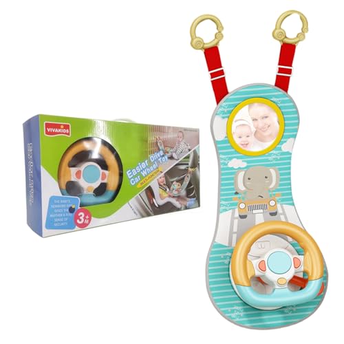 Rear Facing Car Seat Toys, 360° Rotation Baby Steering Wheel Toy with Mirror, Music, Lights and Driving Sounds, 12 Months+ Kids Steering Wheel for Car Backseat, Figürchen
