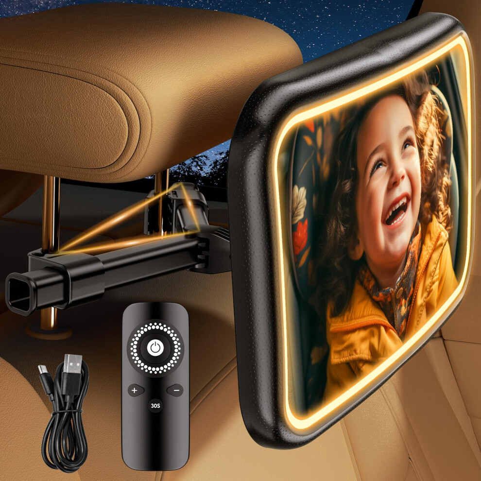 Baby Car Mirror With Light for Baby Rechargeable 2000mA Car Seat Rear Facing Hook Clip Design Mirror for Crystal Clear ShatterProof With Remote 10ft