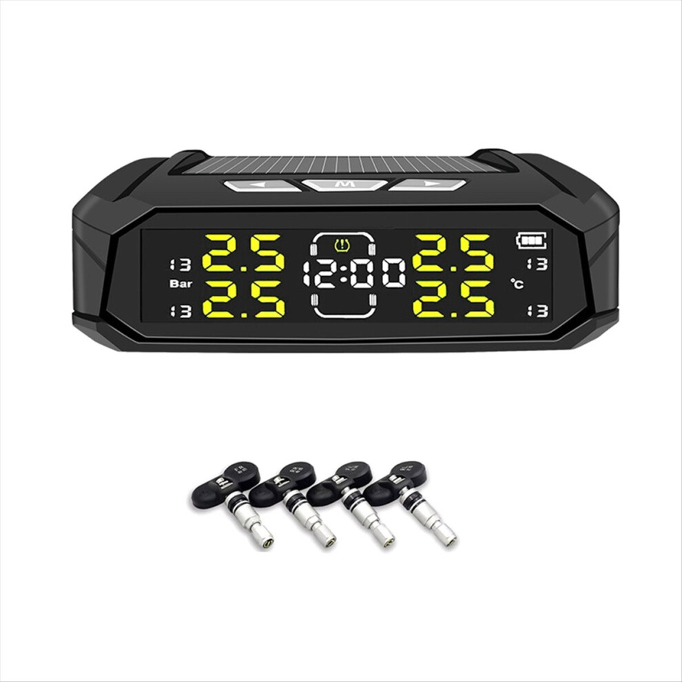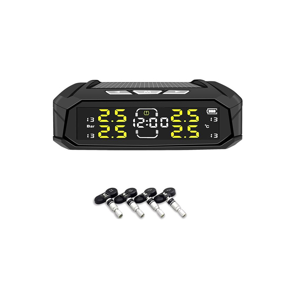 Solar Power Car TPMS Digital LCD Display Car Security Alarm Tire Pressure Monitoring System with 4 Sensors Build-in