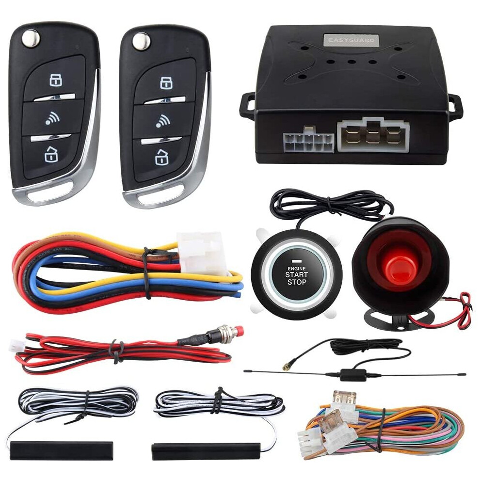 Car Alarm Security System with Push Button Engine Start Stop, AntiTheft Lock and Emergency Alert