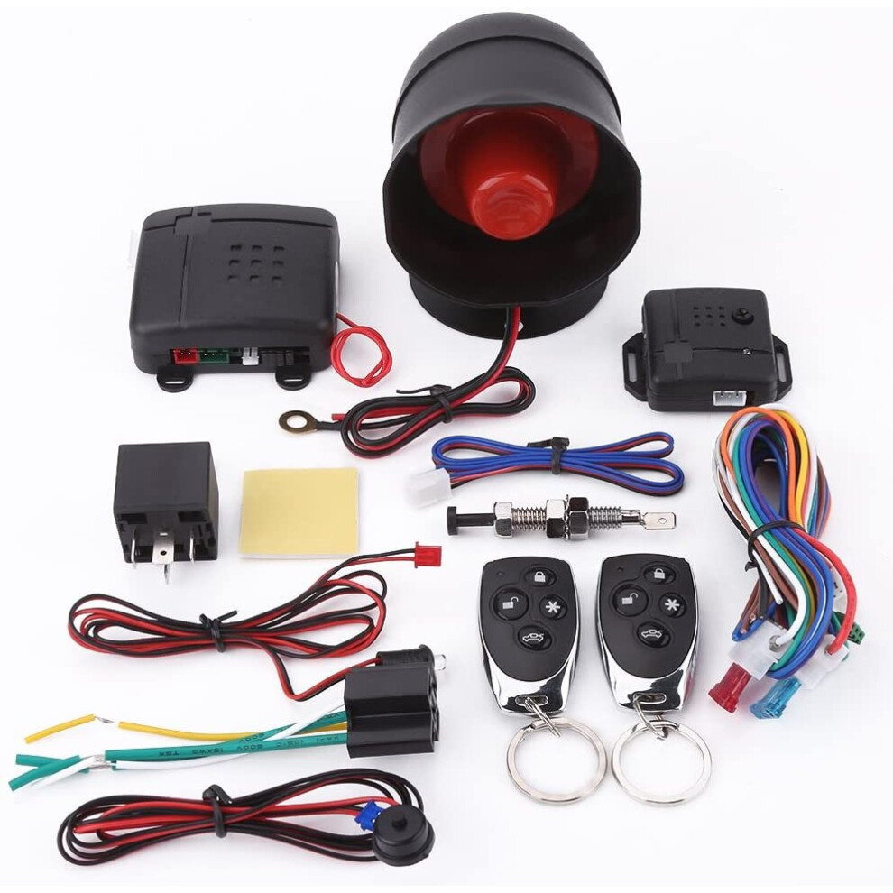 Universal Car Alarm System, Wireless Car Alarm Security System Protection Anti-theft System Keyless Entry with 2 Remote Controls Siren
