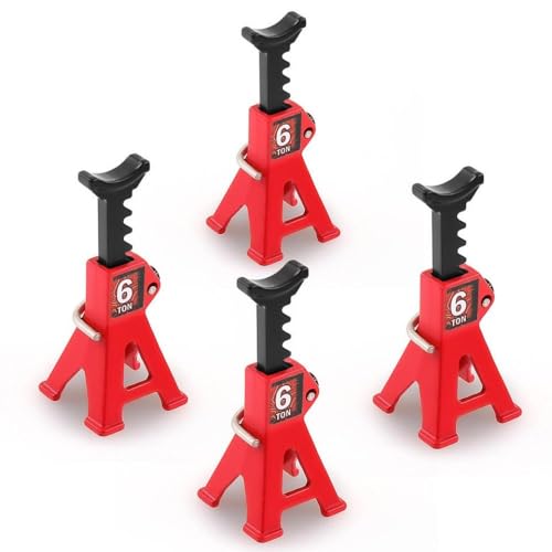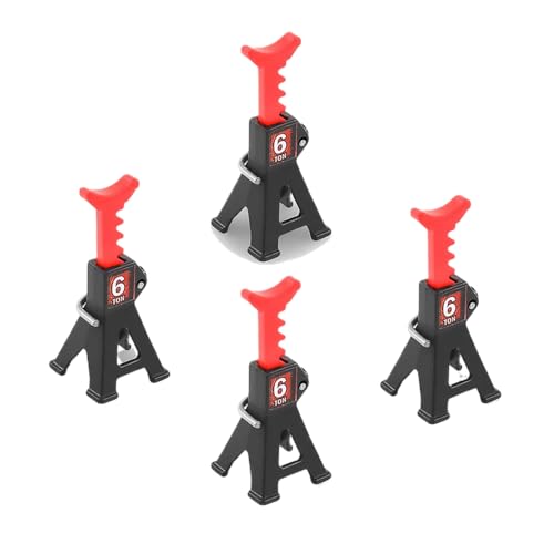 MIGHTY SCAPERS 4pcs 1/24 Scale Simulation Metal RC Car Jack Stands Compatible with SCX24 AX24 1/18 1/24 RC Crawler Models(4pcs Red)