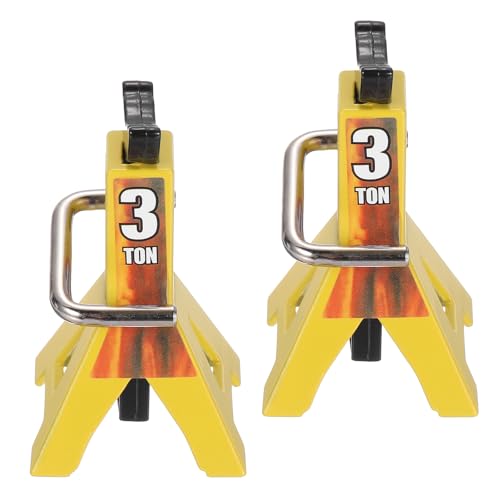sourcing map RC Car Jack Stands, 1/10 RC Scale Jack Toy Stands 3 Ton Metal Toy Accessories Decoration Simulation for SCX10 D90 CC01 Rc Truck Crawler Car, Yellow, 2 Pcs