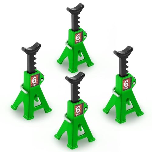 MIGHTY SCAPERS 4pcs 1/24 Scale Simulation Metal RC Car Jack Stands Compatible with SCX24 AX24 1/18 1/24 RC Crawler Models(4pcs Green)