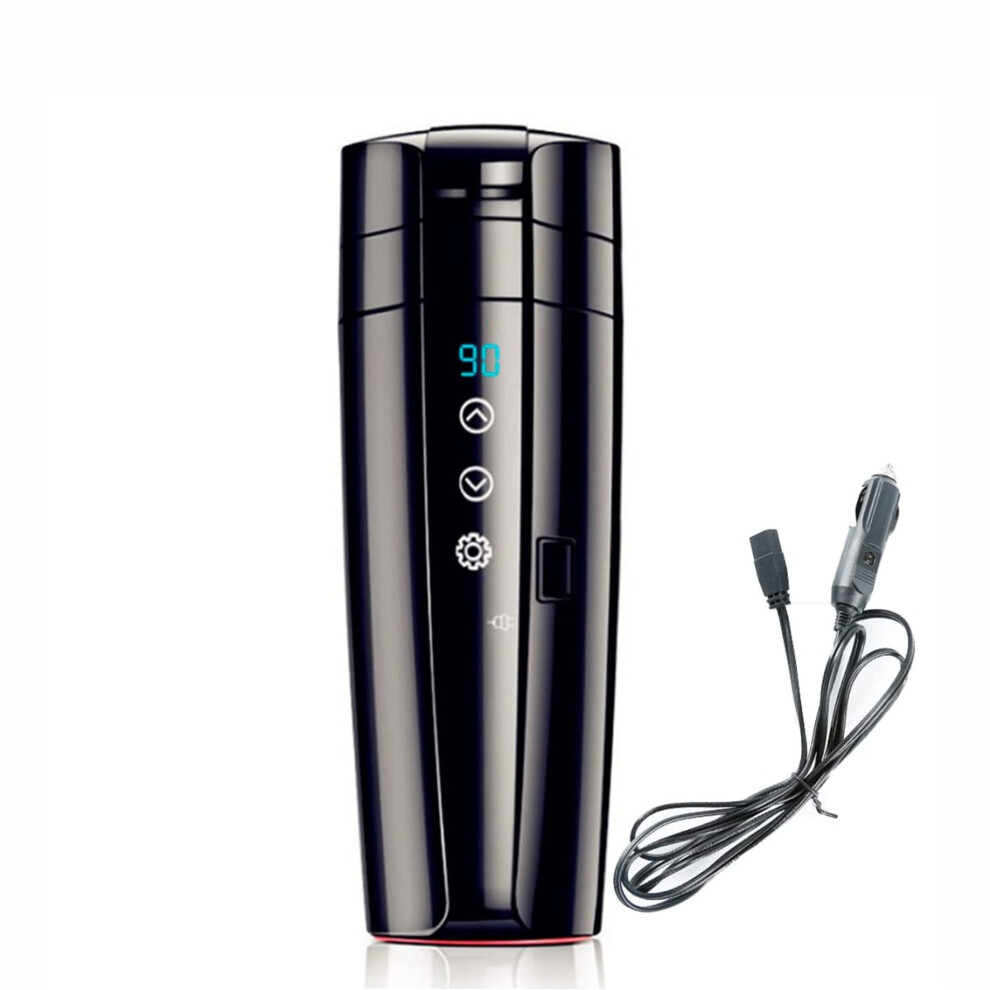 12V Electric Car Heating Travel Mug Kettle,Insulated Cup for Hot Coffee,Milk,and Tea (Black)