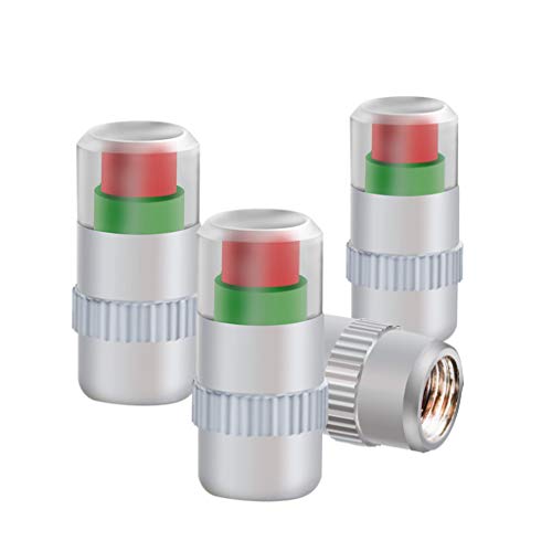 Professional Tyre Pressure Monitoring Cap with Warning Pressure Valve Integrated Gauge for Car Interior Trim (Silver, One Size)